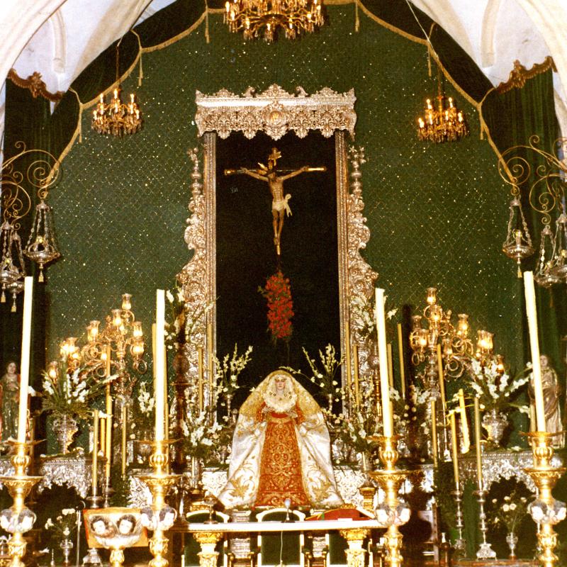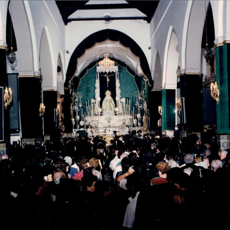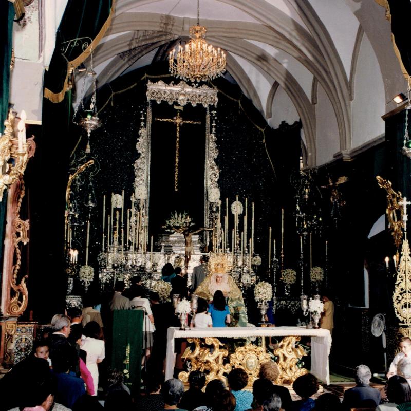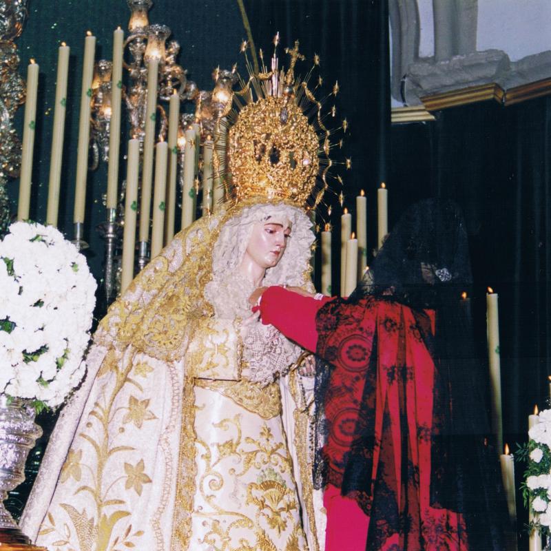 Nada se dejó en improvisación: todo con la solemnidad y el buen hacer que caracteriza a nuestra Hermandad. A continuación del traslado, por la tarde, los días 7, 8 y 9 de octubre, en la Parroquia, y con un altar preparado como si del Quinario se tratase, tuvo lugar el Triduo Preparatorio a la Coronación, cuya predicación estuvo a cargo de D. Manuel Garrido Orta, sacerdote muy vinculado a nuestra Hermandad, mientras que por las mañanas se celebró -cada día- misa solemne. Al finalizar el triduo el sábado, las imágenes quedaron expuestas en devoto Besapies y Besamanos.