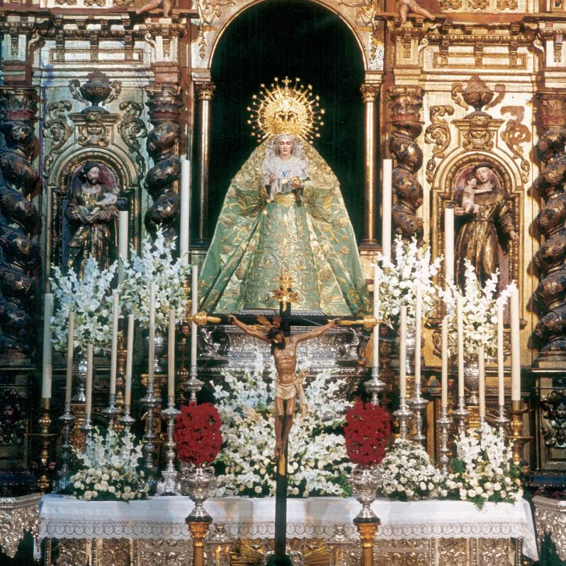 Nuestros Titulares se muestran en el presbiterio de San Gregorio para este acto extraordinario con motivo del del XXXV aniversario de la Coronación, proclamada Canónica