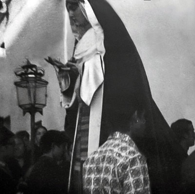 A las 11 de la noche en punto, y sobre el paso dorado del Jueves Santo, la Stma. Virgen de las Angustias, luciendo la nueva corona y a los pies del Stmo. Cristo de la Vera-Cruz, salió en triunfal procesión de vuelta a la Ermita. Para esta solemne ocasión, estrenaba saya roja con bordados en oro sacados de un traje de luces donado por D. Antonio Ordóñez y el manto de tisú blanco. Precedidos por la banda del Cuartel de Marinería de San Fernando, una apretada muchedumbre entusiasmada ante este grandioso acontecimiento jamás vivido, y con unos hermanos que disfrutaban gozosos del momento, fue rodeando el paso todo el tiempo de su recorrido; que fue el tradicional de vuelta de la madrugada del Jueves Santo: Padre Moreno (ahora Padre Ruiz Páez), Padre López (ahora Hermanos Merchante), Calvario, San José, Plaza de España, Ilipa Magna, Real de Castilla, Coronel García Baquero y Plaza de San Gregorio. La banda del Cuartel de Infantería Soria 9 puso sus notas musicales tras el paso, que vino a hacer su entrada en la ermita de San Gregorio bien pasada la medianoche. También habría que reseñar que por entonces, una salida extraordinaria como aquella -aparte del elevado y primordial sentido religioso que tuvo- hay que añadirle ser precisamente extraordinaria, por cuanto nadie había asistido a nada similar hasta entonces en Alcalá del Río. El sentido abierto que se le dieron a los actos, invitando a los alcaldes de los pueblos vecinos y a otras Hermandades, unido al impacto divulgativo que supuso la aparición en portada del diario ABC de nuestra Virgen de las Angustias, hizo que la masiva afluencia de personas aquella noche sobrepasara todas las expectativas. Tan gozoso suceso sirvió también para que muchos alcalareños, residentes fuera del pueblo y sorprendidos por la portada del prestigioso diario, acudieran ese día a vivir el extraordinario acontecimiento. Aunque la prensa luego se hizo eco al día siguiente; además del consabido reportaje fotográfico de todos aquellos actos; con la conciencia de que se estaba viviendo un momento histórico y que merecía ser perpetuado no sólo en espíritu sino también en imágenes, se filmó un reportaje sonoro en cinta de 36 mm, comentado por el popular locutor de radio Agustín Navarro, que luego la Hermandad lo ha hecho más asequible a los hermanos reproduciéndolo en video.
