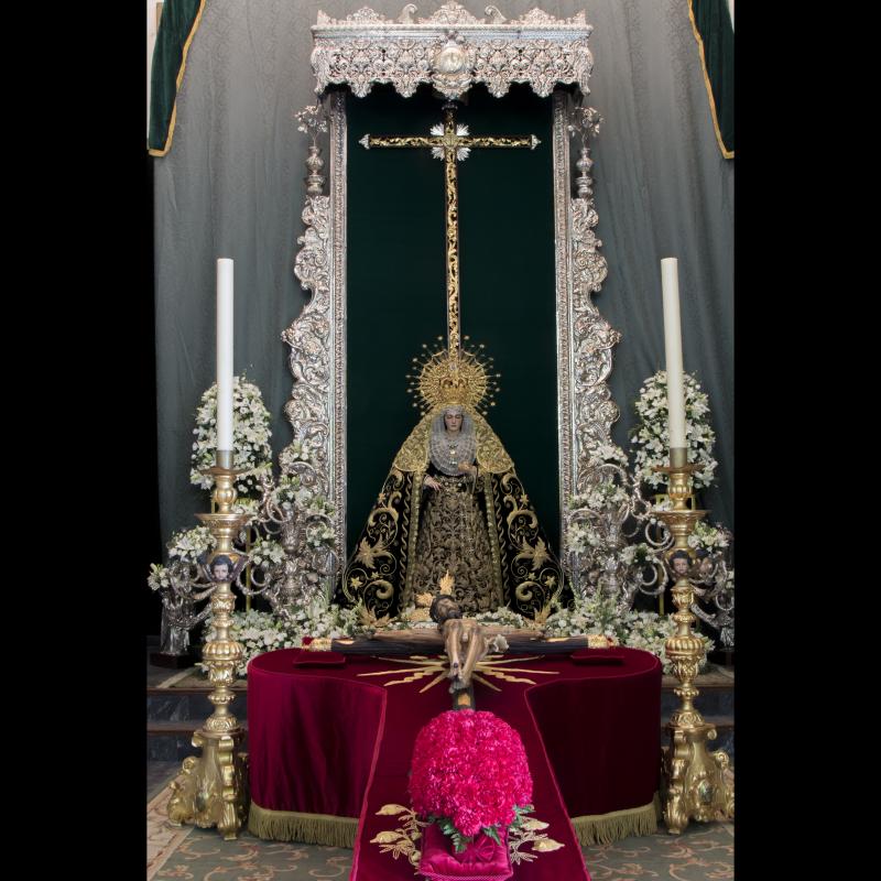 María Santísima de las Angustias se encontraba en la estrella central del Edificio Vera-Cruz, a los pies del Santísimo Cristo, que presidía en un altar para la ocasión en lo que hoy es el columbario de hermanos difuntos.