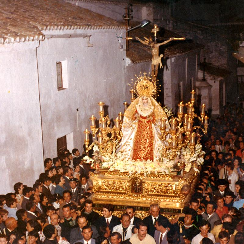 El matrimonio formado por D. José Parrado y Edelmira García realizaron una ofrenda a nuestros Titulares: en primer lugar unas potencias de oro al Santísimo Cristo, cuya imposición, el Día de la Cruz de 1965 fue lleva a cabo por el Cardenal D. José María Bueno Monreal. Sin duda, es el momento precursor de la Solemne Coronación, en tanto que, años después, ofrecerían a la Virgen una Corona de Oro que culminó con tal acción el 10 de octubre de 1971.