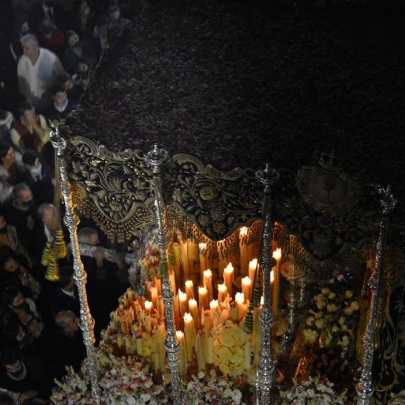 Manifestamos una gratitud y reconocimiento infinito a todos los Hermanos las aportaciones económicas tan importantes que han realizado para la consecución de todos los propósitos descritos y que han enriquecido aún más nuestro ya valioso patrimonio, honrando a nuestra Madre Bendita de las Angustias: en cada culto, en cada procesión de este histórico octubre del Cincuentenario de Su Coronación, todo ha lucido a la perfección. De hecho, ver el palio de nuestra Bendita Madre de las Angustias a la luz del día -y sin ella, solo a la luz de la candelería- más radiante que nunca, emocionó de gran manera a todos los cruceros. No es para menos. No cabía más belleza.